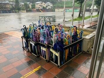 もちろんごく数人には声をかけたりもしますが、9割以上の子供たちが当たり前のように傘をたたんでいます。