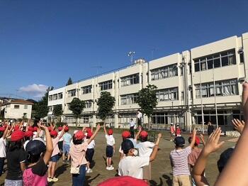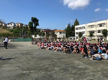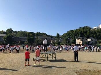 どちらも発出していないことで、何か月かぶりの外での全校朝会です。