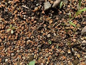 花壇を見ると、先週種まきした「れんげ」の種が、台風の雨と、台風一過の気温上昇で、もう発芽していました。