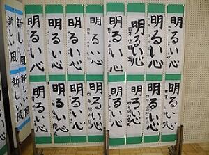 1,2年生は硬筆で、教室の前に展示してありますが、3~6年生は毛筆で、特別活動室にまとめて展示してあります。