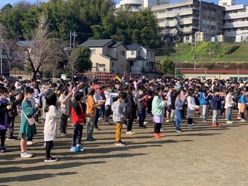 みんなで声をそろえて、体育でサッカーをしていた4年生の声に負けない大きさで歌を歌っていました。