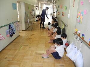 廊下で準備をして並んで順番を待ちます。