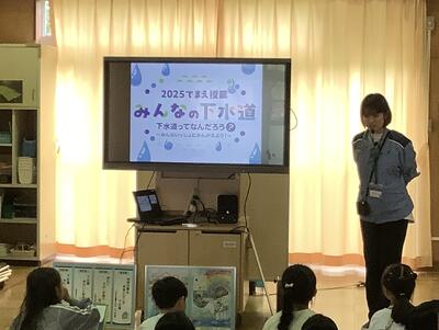 今日は、下水道局の方に来ていただいて4年生が下水道の仕組みについて学習しました。