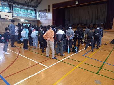 学校到着後、帰校式を行いました。3日間の成果と課題を振り返りながらの時間となりました。今日は天気が崩れるとの予報でした。到着時も不安視されていましたが、傘を使うことなく帰宅できたかと思います。