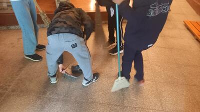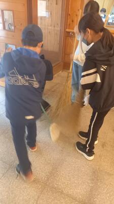 出発の準備の一環として清掃に取り組んでいます。「来た時よりも美しく」、これが少年自然の家の合言葉です。部屋だけでなく、玄関や体育室などの清掃も行っています。