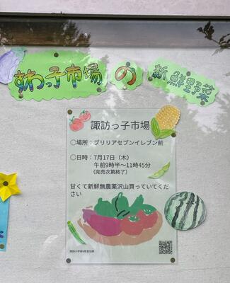 明日は、いよいよ6年生によるすわっ子市場が開催されます。このところの天気が安定しませんが、できる限り新鮮な野菜を売りに行きますので、お楽しみにしてください。