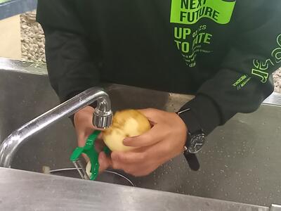 ジャガイモもピーラーを使いながら、芽を取ることを忘れずに作業しています。