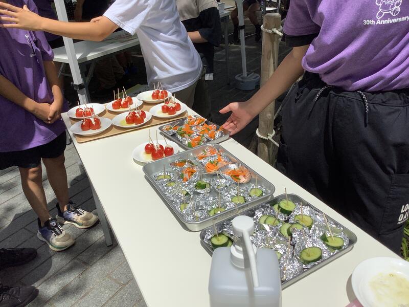 お店の中には、割引率を決めるガラポンやとれたての野菜を使った料理を試食してもらうコーナーもあり、お客さんにも好評でした。