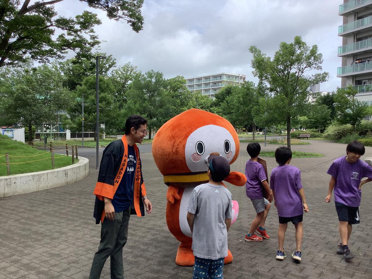 ながドンも応援に来てくれました。今日を迎えるまでに相談や準備等お手伝いいただいたブリリア多摩ニュータウン理事会の方々や保護者の皆さま、お店に足を運んでくださったお客様に感謝申し上げます。野菜はまだまだ収穫が続きそうですので、また皆様に何らかの形でお届けできればと思います。引き続き、よろしくお願いいたします。