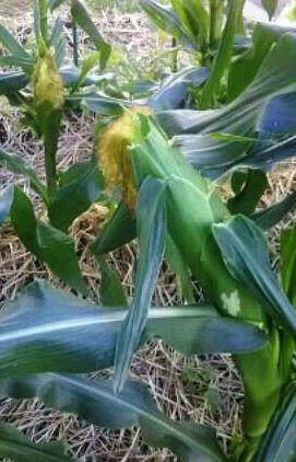 手前が水田,奥がヒマワリ・トウモロコシ等々,元気に育っています。