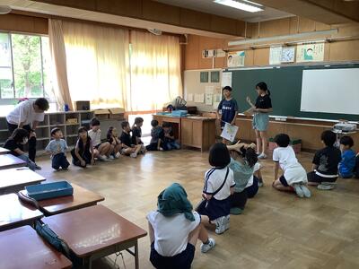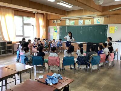 今年度初の縦割り班活動が始まりました。縦割り班活動とは、1年生から6年生までの子供たちで構成され、年間を通じて異学年の子供たちの交流を深めることを目的としています。最高学年である6年生が中心となって自己紹介やゲームを楽しんでいました。