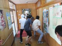 児童の安全確保のために、緊急放送と共に教室に鍵をかけます。各教室において、人の気配が感じられないように、児童は身を沈め静かに待機します。