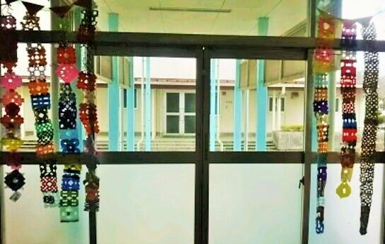 1年生が6年生への感謝の気持ちを込めて,飾り付けを作りました。