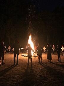 キャンプファイヤーは、大きな炎の明かりで、温かい雰囲気でした。