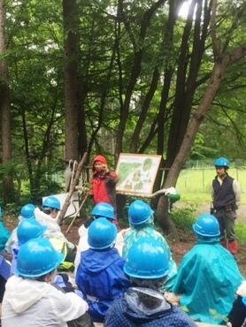 八ヶ岳移動教室…宿舎裏にて林業体験
