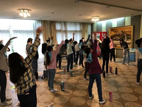 まだ少し雨が残っているため、朝の集いは室内で行いました。