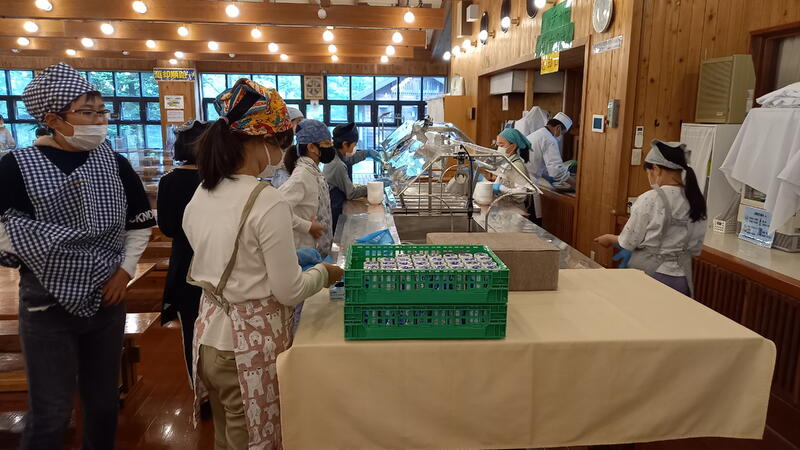 食事係は身支度を整えるとすぐに食堂で準備を始めました。こうして迅速に活動できるようになったのも宿泊行事ゆえ、と感激をしています。
