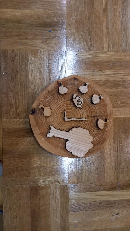 午前中の林業体験でもらった間伐材を生かした作品もあります。子供たちの発想のよさが随所に見られています。