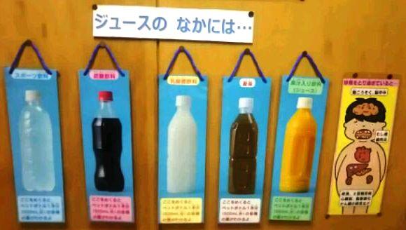 保健室前に「ジュースの中には…」という新しい掲示があります。