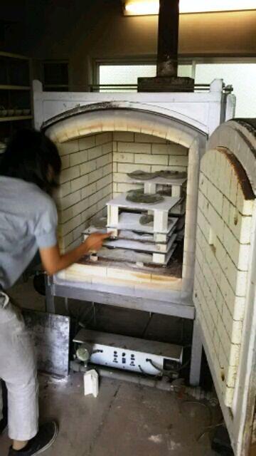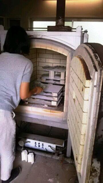 図工専科の河合先生が1つずつ焼き上がりを確認しながら窯出ししました。