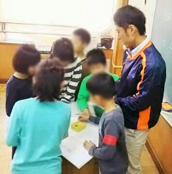全体指導をした後に,さらに小グループごとに前に呼び,