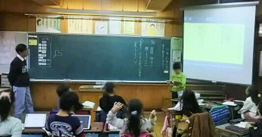 短歌・俳句に親しむ授業をタブレットPCを活用して進めていました。