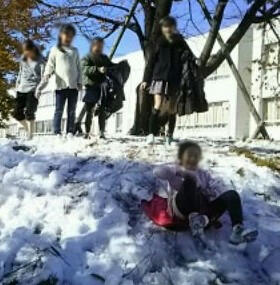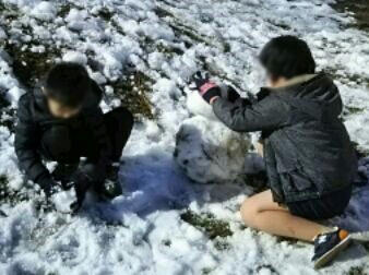 昨日の雪が少し残っています。みんな楽しそうでした。
