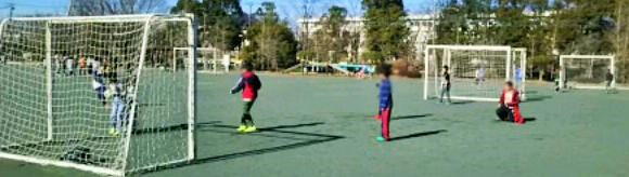 サッカーゴールの位置をずらして,ミニコートを2面とれるようにしています。
