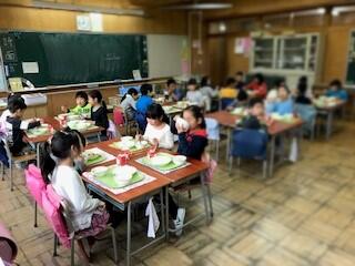 楽しくておいしい給食が始まりました。(2~6年生)