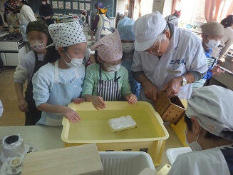 3年生が、総合的な学習の一環で、豆腐作りを行いました。