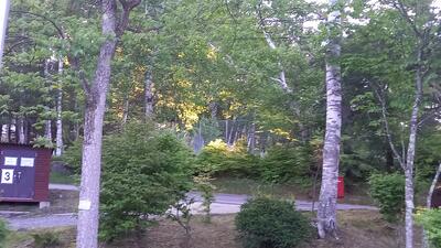 一歩外へ出ると、木々の間から差し込む日の光がとてもやわらかく感じられます。現在の気温は7℃。東京との違いが感じられます。