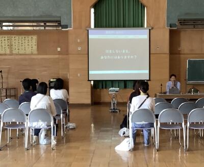 中休みには、保護者向けにSNSの家族間でのルールやサポートについてお話をしていただきました。3年生以上の学年も、SNSの正しい使い方などについてビデオとお話で分かりやすく説明していただきました。