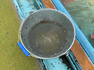 6月26日(木)の2時間目に学校のプールにて2年生がヤゴ取りをしていました。プールの水は深いところで20cmほどですが、みんな一心不乱になってヤゴ探しをしていました。近くをアキアカネが、悠々ととんでいく様子も見られました。