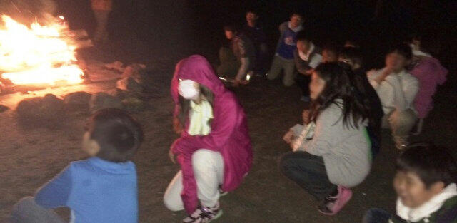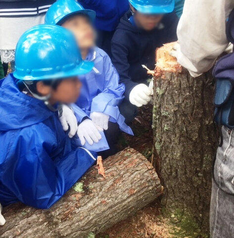 八ヶ岳移動教室…宿舎裏にて林業体験