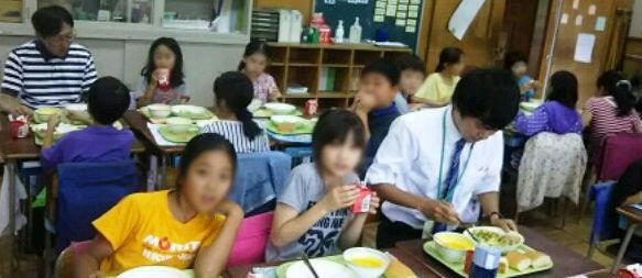 給食で楽しく会話