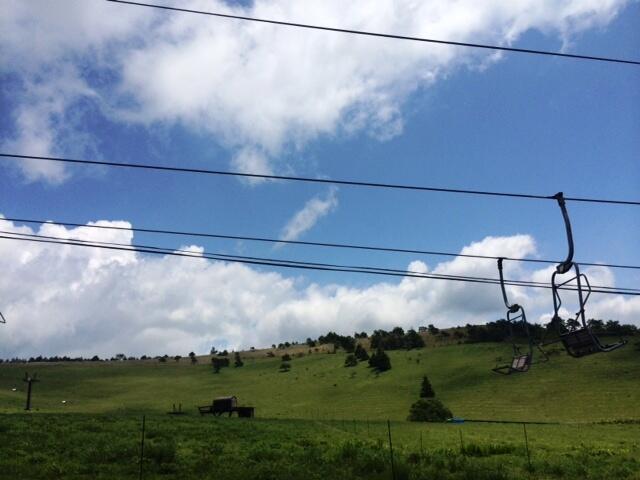 車山に到着し、リフトに乗ります。きれいな青空が見えます!