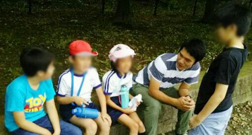 先生と木陰でおしゃべりする子供達