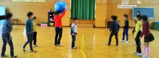 Gボールを使って,ゲームをしたり, 交流を深めたりしています。