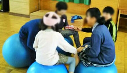 Gボールを使って,ゲームをしたり, 交流を深めたりしています。