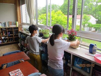 10日(火)、1年生の生活科ではあさがおの種をまきました。土の入れ方やあさがおの種のまく場所などの細かい作業もできました。「早く芽がでないかな」「私のあさがおは何色だろう」と、早く育ってほしいという気持ちを伝え合いました。