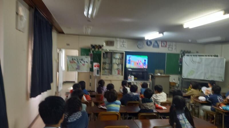 室内で、動画を観ながら安全な歩行や自転車の乗り方を学んでいます。