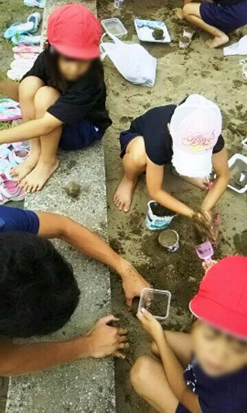 そこで1~4年生までの希望者に,校長先生が1匹ずつ掘り出して配布しました。