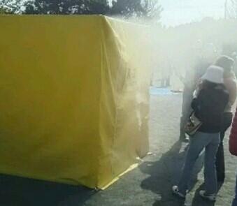 消火器やAED,簡易担架,煙部屋,はしご車等,様々な体験をしていました。