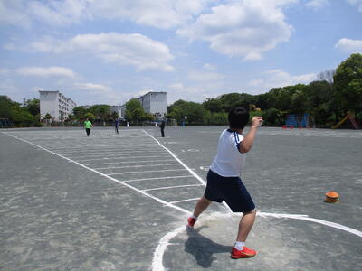 5月12日(金)に体力テストの種目の一つである「ソフトボール投げ」を1~6年生が行いました。