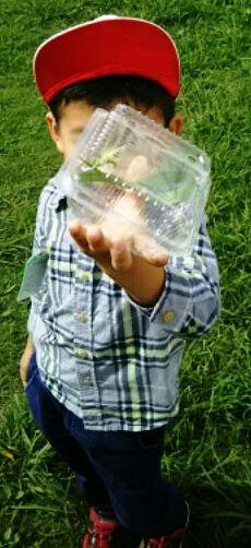 バッタやトンボ,チョウなど様々な生き物を見つけていました。