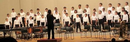 児童全員が指揮者の福島先生に注目し、リズムの合った元気で明るい演奏ができました。