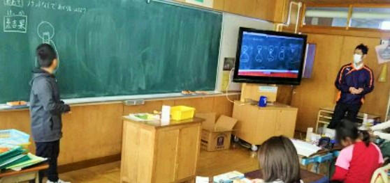 ↑ 子供たちが,自分の立てた予想について発表している様子です。