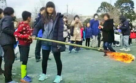 青空に粉雪が舞う中,毎年恒例の青少協主催による「どんど焼き」が行われました。