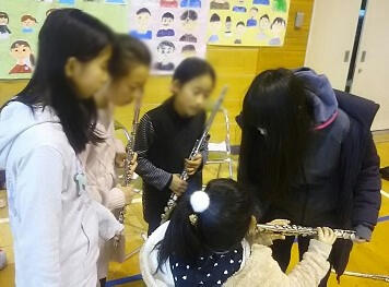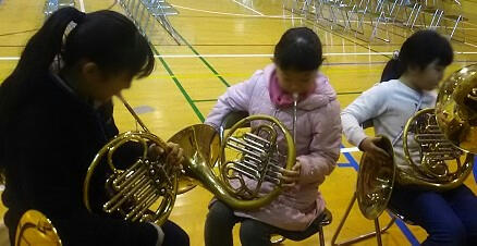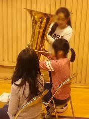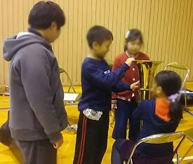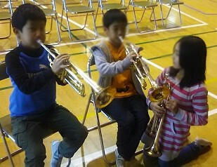 本年度部員の4~6年生が,来年度入部希望の現3年生に楽器の魅力や演奏方法を伝えました。