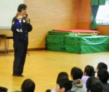 多摩警察署からおまわりさんが来て「交通安全」についいて話がありました。